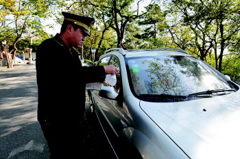 本报11月2日讯(记者 杨广帅) 深秋季节,八大关美景吸引了众多市民和游客。但有些人为图方便,将车随意停在禁行路段的人行道上,给行人带来诸多不便。2日,八大关城管对人行道违法停车行为进行查处,仅一小时就劝离十余辆车,贴出13张罚单。