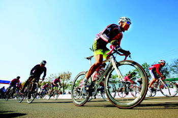 2日,在青岛高新区智力岛路,来自国内外的骑行运动员们正在竞逐。当日,2014“蓝湾智谷杯”首届青岛公路自行车公开赛暨第二届青岛高新区公路自行车赛举行,160名专业运动员、240名团体业余车手参赛。其中个人计时赛环绕智力岛骑行8圈,全程20公里,团体计时赛环绕智力岛骑行4圈,全程10公里。