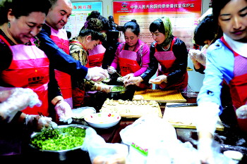 新疆客人和日照家庭一起包水饺。