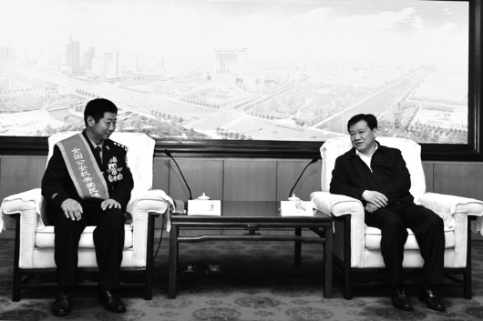 张光峰接见全国公安机关爱民模范集体代表张长玉。