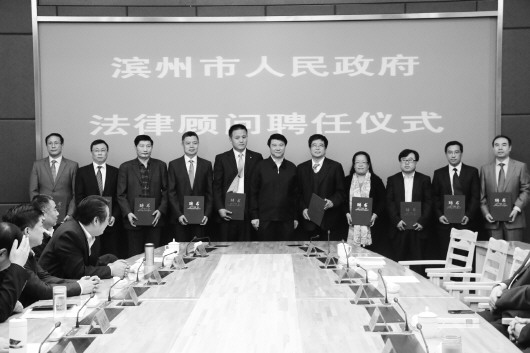 滨州市委副书记、市长崔洪刚说,法律顾问担负着为市政府依法、科学、民主决策提供参谋服务的重要职责,法律顾问出具的法律意见既要合法又要具有可行性,兼顾依法行政和有效行政两个目标,努力做到合法性和可行性的统一、法律效果和社会效果的统一。