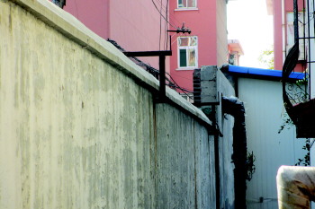 之前由于协商不妥,进入宏鑫园小区的供暖主管道已经被割掉。 本报记者 唐菁 摄