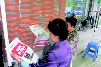 市民在活动现场翻看齐鲁晚报。 本报记者 刘晓 摄