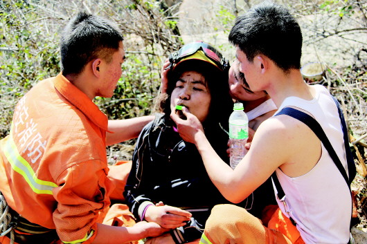 3日,泰山消防战士攀上悬崖,救助被困女驴友。泰安消防部门供图