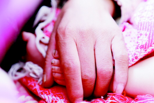 即使在半昏迷状态中,于宝芹也总是摸索着女儿的小脚丫。 本报记者 韩逸 摄