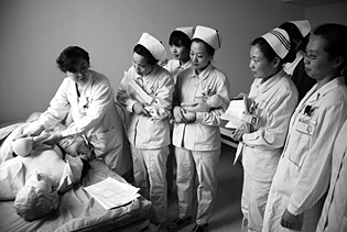 为迎接省对爱婴医院复审,济宁市妇幼保健院举办“母乳喂养”知识培训会。图为医疗科室医护人员学习母乳喂养知识。