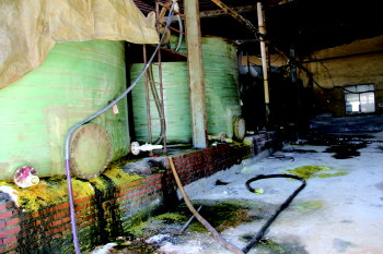 公安与食药监部门联合查处的一处非法排放危险废物现场。(警方供图)