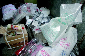 公安部门缴获的腐竹非法添加剂。 本报记者 刘光斌 摄