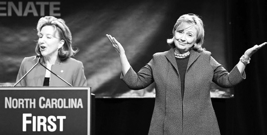 上月底在北卡罗来纳州为党内同僚助选时的希拉里。