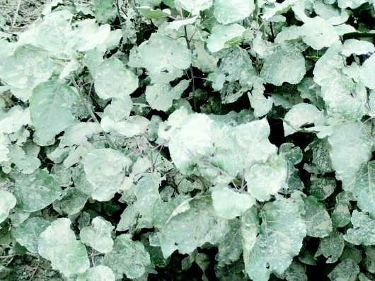 石料厂周边的植被上覆盖了一层厚厚的尘土。