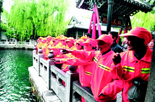 考虑到环卫工常年与垃圾打交道,工作环境相对艰苦,且工资待遇较低,加之年龄普遍偏大,很少有机会外出游玩。在劳动节期间,本报特意为环卫工人打开趵突泉公园的大门,为环卫工人过了一个特殊的节日。
