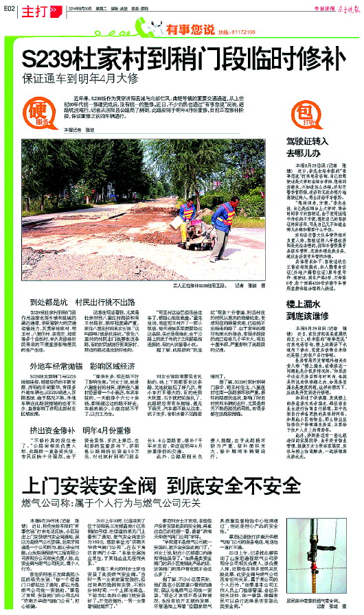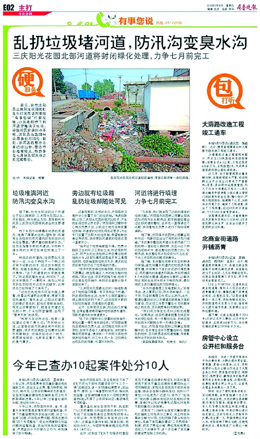 为保证市民“话有地方说、事有地方办、困难有人帮、问题有人管”,本报于3月14日开通“有事您说”栏目,倾听民生难题、难事。在半年多时间里,为市民排忧解难近百件,件件都和百姓生活息息相关,受到社会各界的好评,“有事您说”成为齐鲁晚报《今日济阳》的主打栏目,热线电话“81172106”也被更多的人熟知。