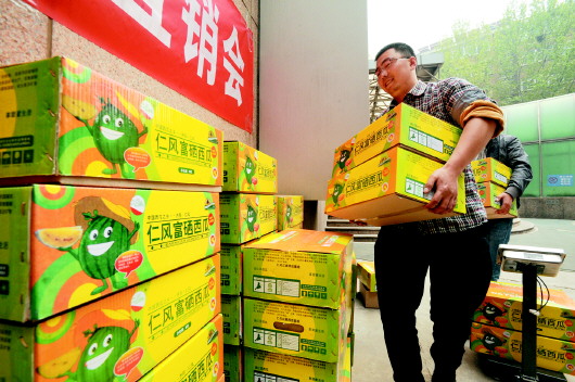富硒西瓜销售现场。 本报记者 戴伟 摄