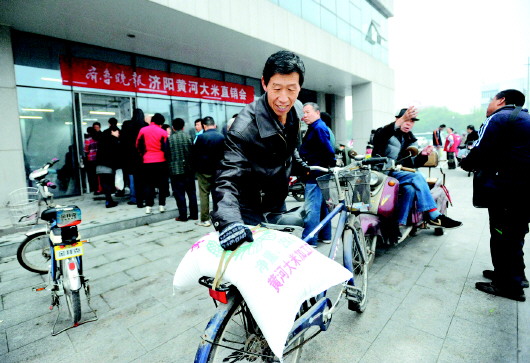 黄河大米义卖现场,市民争相抢购。 本报记者 张中 摄
