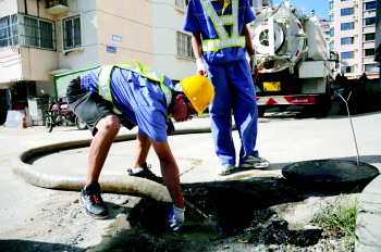 9月10日,排水处工作人员就来疏通过下水道。 本报记者 李泊静 摄