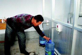 本报11月6日讯(记者 刘震 通讯员 徐聚法) 6日上午,在胶州市洋河镇神山后村,村民正用IC卡在水房取用纯净水。据悉,该村是胶州市偏远村庄饮水安全工程中最后一批完工村庄之一。据介绍,全部工程将于11月完工,届时,84个村庄的4.38万村民将喝上放心水。