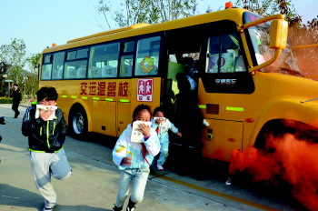 6日,崂山区晓望小学500余名师生进行了“校车安全逃生演练”,交运温馨校车公司在所属1600部校车上开展“消防安全”车厢知识讲堂活动,使校车成为流动的安全课堂和传播安全文化的阵地。