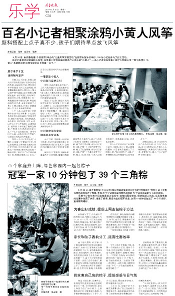 2014年5月,100名小记者齐聚游泳馆广场,上演小黄人涂鸦大战。一个个憨态可掬的小黄人在孩子们灵动的笔下活灵活现地跃然风筝上。孩子们沉浸其中,期待着风筝大作早点完成,放飞风筝。