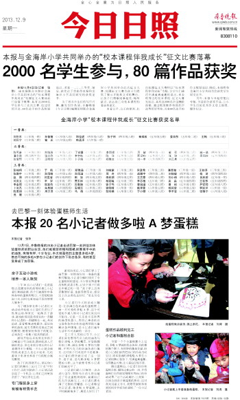 2013年12月,齐鲁晚报《今日日照》与日照金海岸小学联合举办“校本课程伴我成长”征文大赛,2000名学生积极参与,用童真童趣的语言描述身边的校本课程。80名选手脱颖而出,部分优秀作文还登上了报纸。