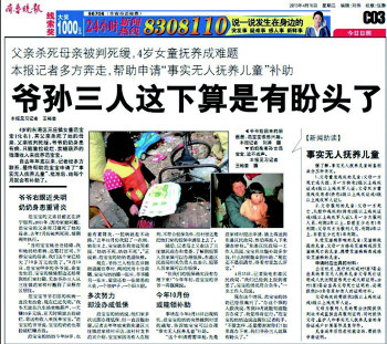 本报去年报道了东港区三庄镇女童范宝宝(化名)的悲惨遭遇。在父亲杀死母亲被判死缓后,患有疾病的爷爷奶奶,只能靠捡破烂、卖糖葫芦赚来的微薄收入抚养她。去年,在本报记者的积极奔走帮助下,范宝宝在去年春节前开始,拿到了每月720元的“事实无人抚养儿童”补助。范宝宝现在已经上一年级了,每天都是奶奶接送她上学和放学。