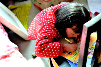 宝宝入学已经两个月了,这次考试语文和数学都是A+。“老师说宝宝学习还行。”夏女士说,但是由于自己和老伴都是文盲,辅导不了宝宝。有时宝宝问她不认识的字怎么念,她不会,只能干着急。遇到这种情况,宝宝有时会急得像热锅上的蚂蚁,一个人在屋里来回走动。有一次,她不会一道数学题,晚上10点多了,跟夏女士说要去邻居阿姨家问阿姨,“我说阿姨这么晚肯定睡觉了,不要去打扰了。”夏女士说,后来宝宝就没去。