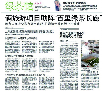 绿茶长廊助力旅游项目,巨峰镇两者有机结合引来不少游客。