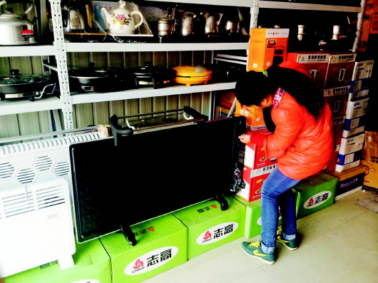 刘女士正在挑选电暖器。 本报记者 刘哲 摄