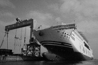 6日,由黄海造船有限公司建造的2300客位/2500米车道大型豪华客滚船 “渤海玛珠”顺利下水。据称,该船是迄今亚洲建造最大、技术最先进、安全性能及豪华程度最高的客滚船,预计于2015年2月前后交付使用。 本报记者 王帅 摄影报道