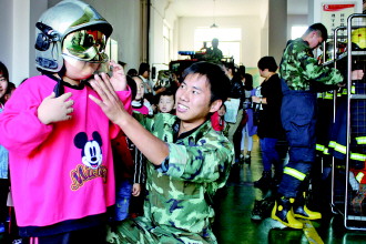 4日上午,小记者首先来到了消防官兵的训练场地,小记者参观了消防灭火和救援的设备器材。消防员为小记者一一讲解每样工具的作用,在讲解完消防服后,不少小记者也跃跃欲试打算穿戴一下。穿戴上衣服和头盔,并背起灭火器走了一圈,小记者直呼这套装备太沉了。“别小看这衣服,整套穿戴起来很沉的,至少有20斤,这鞋子里面都是钢板,不怕压的。”消防员说。