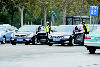 6日,淄博交警对单号出行的车主进行劝导。当日,是淄博限行首日,不少市民主动响应,停驶限行车辆。交警出动624人次、设84个检查点劝导违反限行规定的车辆。 本报记者 王鸿哲 摄影报道