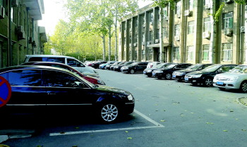 6日下午,记者在部分政府机关看到,单号公务用车停在停车场。 本报记者 王鸿哲 摄