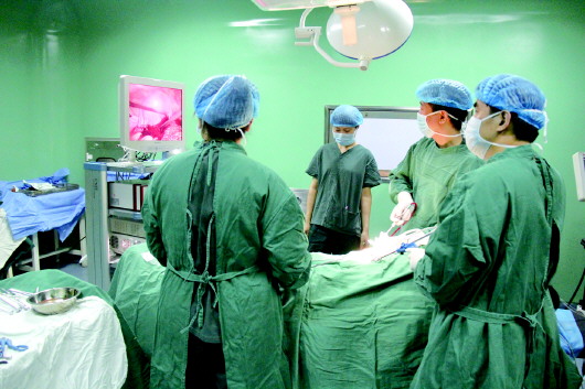 近日,章丘市妇幼保健院成功实施一例腹腔镜下多发性子宫肌瘤切除术。据了解,患者于5年前患有多发性子宫肌瘤,到妇幼保健院就诊时腹部如同5月妊娠,彩超显示最大的一个肌瘤达108乘74毫米。经过两个多小时的手术,重约4.15斤的子宫肌瘤被成功切除。