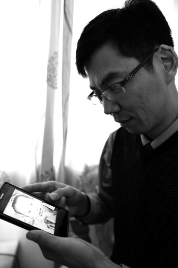 焦建新翻看女儿的照片。本报记者 苏洪印 摄