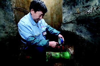 工作人员在单元井内检查水循环是否正常。