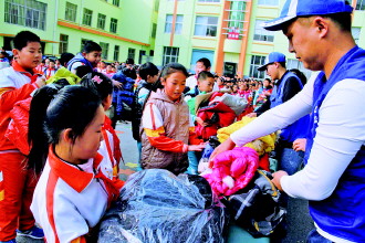 11月10日,一场“情暖校园、爱满山区”爱心捐赠活动在文登区实验小学举行,他们为我省微山县山区的孩子们捐赠冬衣一千余件,书籍五百多本,用实际行动表达对山区孩子的爱心。