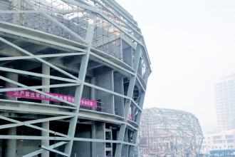 体育中心的体育馆和游泳馆目前已经完成主体工程建设,下一步即将进行外面玻璃幕墙建设。 本报通讯员 马涛 摄
