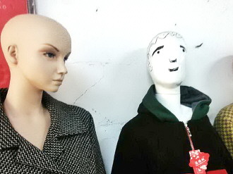 时间:2014年11月2日 自述:一家卖女装的小店内,一个模特脸上光溜溜的,老板便自己拿起画笔,给模特“化妆”。 点评:画成这样,不知道能不能招揽来生意。