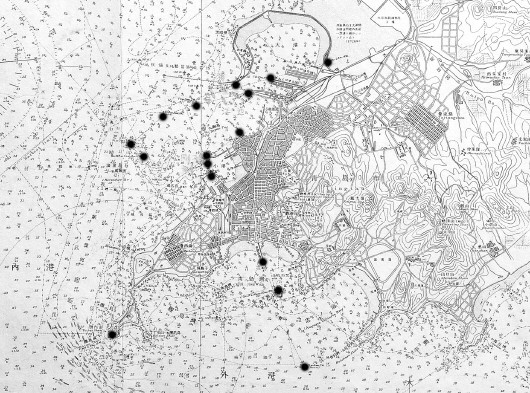 当年日军绘制的青岛港图(局部),其中一些圆点是堵塞航道的沉船位置。