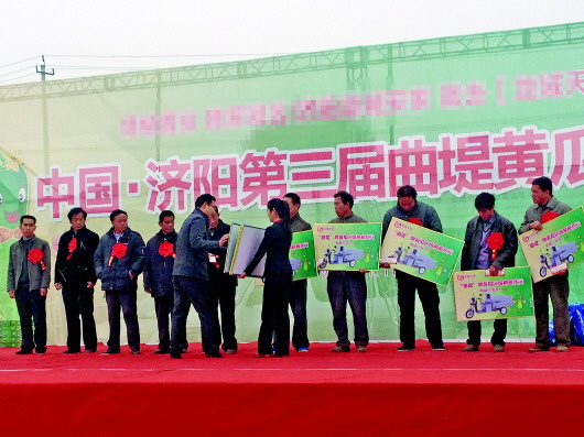 曲堤镇政府相关负责人介绍,11月11日,寓意“曲堤黄瓜直通天下”。由此从2012年起每年的11月11日,定为“济阳县曲堤黄瓜文化节”,今年是第三届。“前两年均以政府为主导操作该文化节,今年则交由公司主办。”