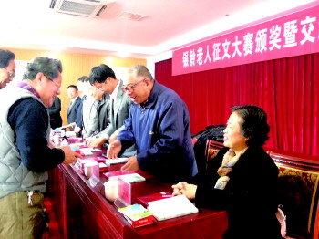 11月11日上午,在烟台市御花园老年公寓,几十位老人端坐台下,正在等待“银龄老人征文大赛颁奖典礼”的举行。据介绍,由烟台市老年学学会和御花园老年公寓联合主办的“银龄风采大家谈”征文活动,以“我们应当怎么样做老人”为主题,共收到投稿作品263篇,其中46篇文章获奖,并由烟台老年学学会汇编成集。