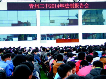 本报11月11日热线消息(记者王庆和 通讯员俊言 海燕)为进一步增强广大师生的法制观念,提高自我保护意识,推进平安校园建设,近日青州市东关派出所崇利之所长应邀到青州三中为全体5000名师生做了一场法制现场报告会,旨在进一步提升全校师生法制安全意识,为他们在日常生活学习当中自觉做到学法、守法、用法打下了良好基础。