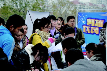 从一些招聘摊位前的排队情况就能看出,毕业生对招聘会非常关注,但并非每个摊位都是如此情形。记者看到招聘会现场国企和名企的摊位被围了三四圈,而中小企业的摊位前相对冷清。对此,今年上大四的孙华强告诉记者,国企和名企相比中小企业在制度方面都正规些,而且发展空间更大。相比国企一上午就收到近百份简历,山东某民企工作人员表示,他们一上午仅收了到20几份简历,这还算多的。