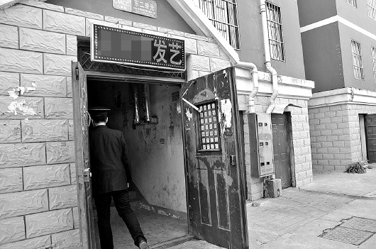 一家发廊开在了居民楼里,广告牌直接安在了单元门上面。本报记者 李倩 摄