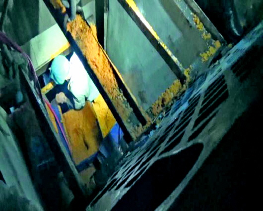 据了解,该加工厂共有三层,一层楼高三米左右。电梯原本停在二楼,当时几名工人正使用小推车往电梯里运蔬菜。工人们介绍,他们正在装运时,电梯突然发生坠落。一名正用车往电梯里运货的工人连人带车跌落电梯,工人左手被卡在电梯和楼层之间,身体则由于手被卡住而吊在半空,脚离地还有一米多高,被卡工人痛苦不堪。