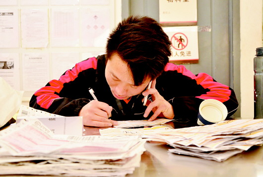 收单、分拣、送件上门……快递员每天重复着同样的活。本版图片由本报记者 戴伟 摄