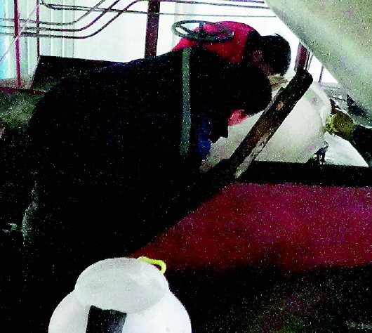 商河县集中供热管理服务中心工作人员对锅炉进行检查。