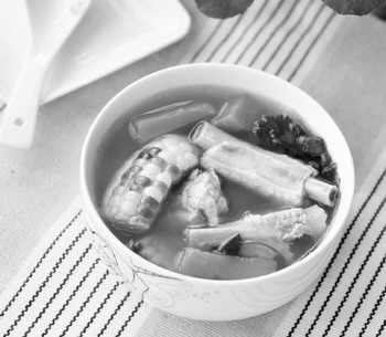 猪大排、玉米、胡萝卜、姜、蒜、八角、花椒