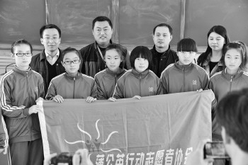 蒲公英行动志愿者协会工作人员与获奖学生合影。