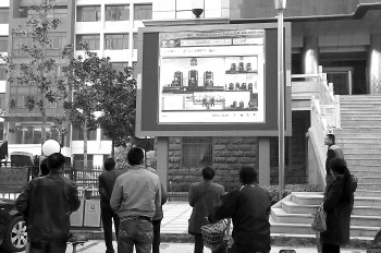 市民通过菏泽中院室外电子屏观看庭审。
