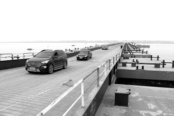 日前,北依河南省濮阳县梨园乡,位于菏泽市牡丹区李村镇境内的刘口黄河浮桥建成通车,极大方便了车辆通行。据悉,该浮桥总投资过亿元,长560余米,宽22米,最大载重量200吨,南接刘民路省道,北通106国道。